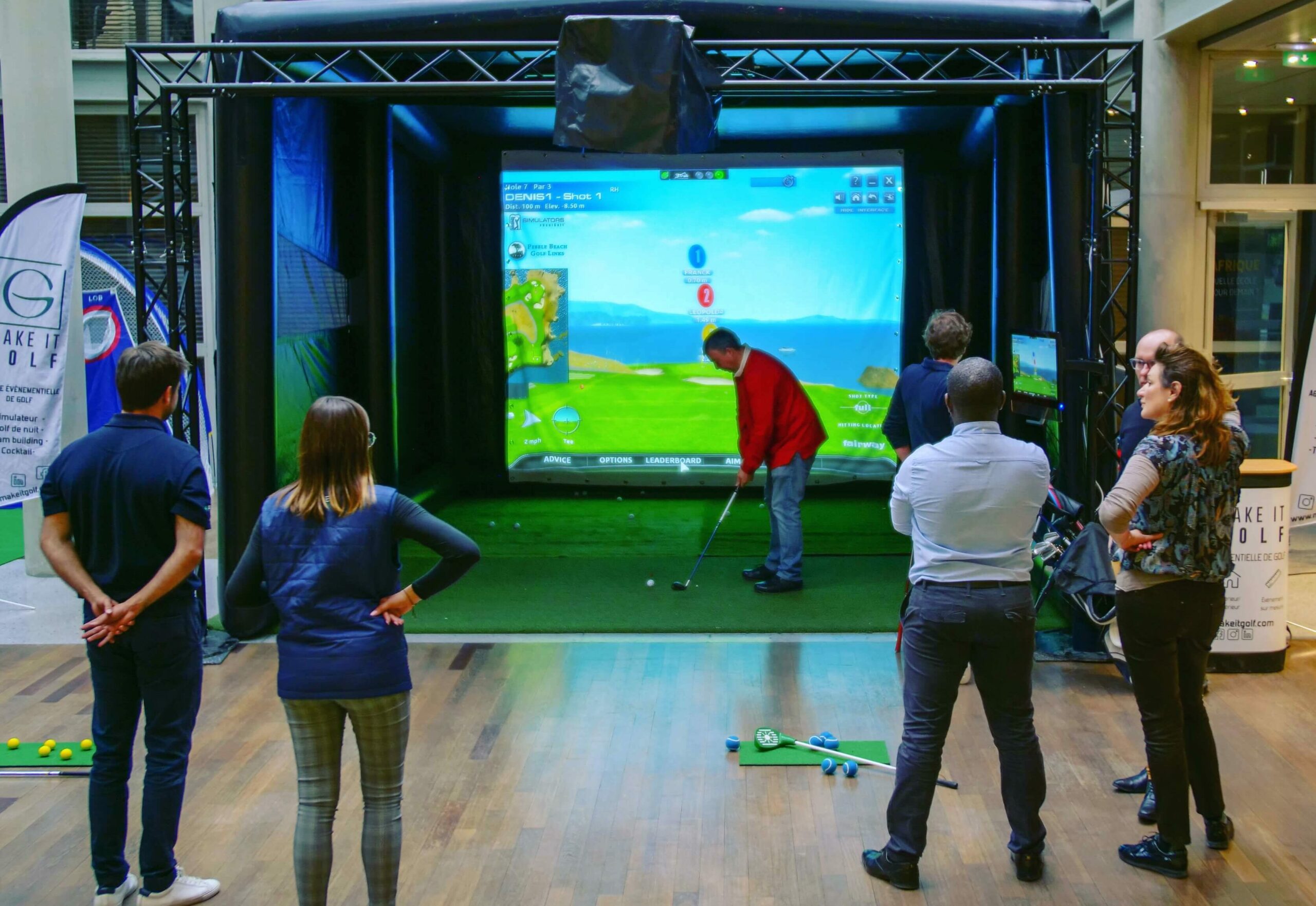 Le simulateur de golf : initiation sur un practice virtuel, concours de précision sur un trou prestigieux, le tout encadré par des enseignants du golf sont des expériences qui vous tentent ? Les différents modes de jeu permettent à tous les participants de s’amuser même sans savoir pratiquer le golf.